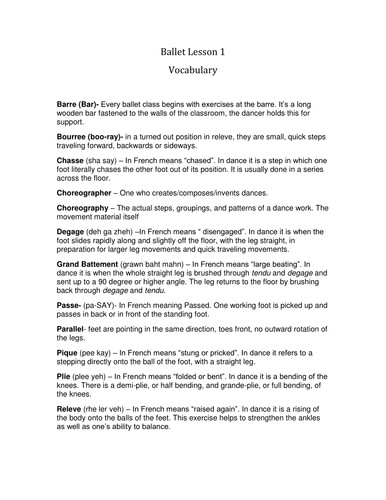 Ballet Vocabulary List Teaching Resources