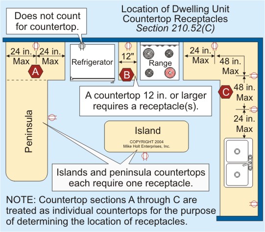 There is a link at the bottom of this page for you to access the actual nec code books for free. Rough in guide for receptacles lighting appliance circuits service equipment and wire cable applications. During new construction or major kitchen remodeling the building code will likely require that you bring both the plumbing and wiring systems into alignment with the current code requirements. Electrical code basics and recommended practices for kitchen renovation often seem like pointless rules cooked up in an office boardroom as electrical code eventually does get hammered out across conference tables.