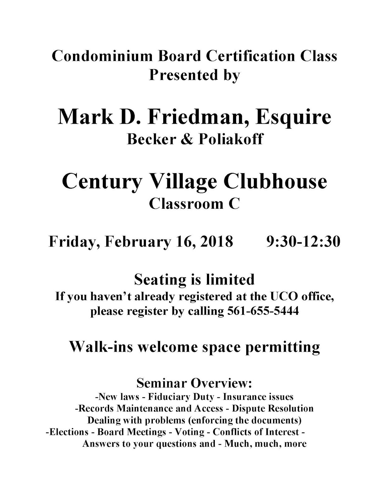 Pompano Hoa Board Member Certification Course Kaye Bender