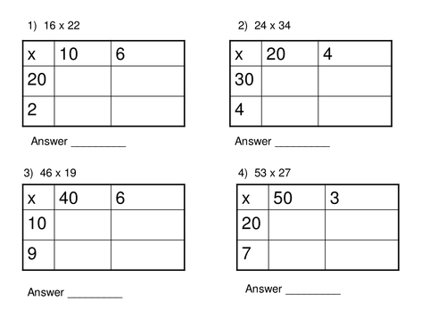 Box Method Multiplication 2 Digit Numbers Worksheets Pdf