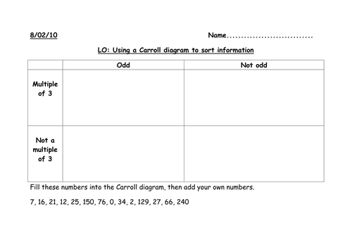 Classifying Numbers In Carroll Diagrams Lesson Plans Worksheets And More