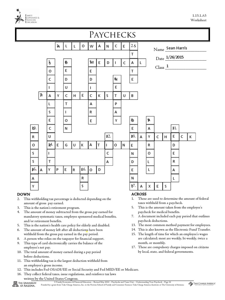 Paychecks Crossword Puzzle