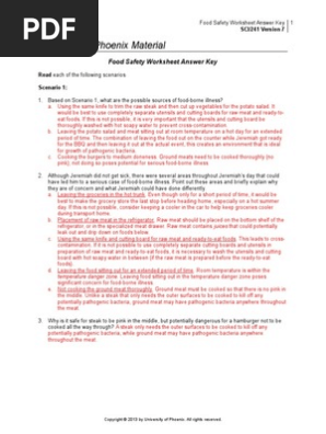 Food Safety Worksheet Answers