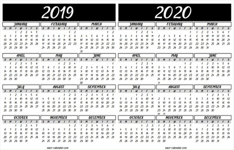 2019 2020 Two Year Calendar Free Printable Microsoft Word