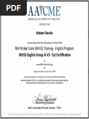 Free nihss certification. Apex innovations offers two free courses. Or do i need to get this done through aha. Do i need to complete all certifications from a through i to become nihss certified. Its presented by national stroke association and american academy of cme.