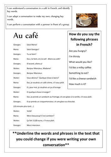 Key Stage 2 And 3 Au Cafe Simple Cafe Conversation And Comprehension Worksheet