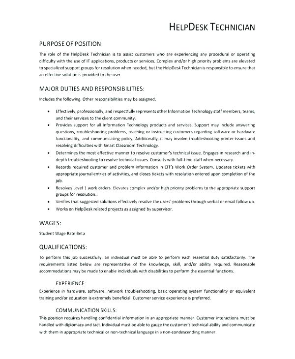 Get help from the help desk job description. It help desk support job description examplesampletemplate. Get inspired with this sample resume for a midlevel help desk professional that isaacs created below and download the midlevel it help desk professional resume template in word. Showcase your technical diagnostic and customer service skills to generate interest from employers says resume expert kim isaacs.