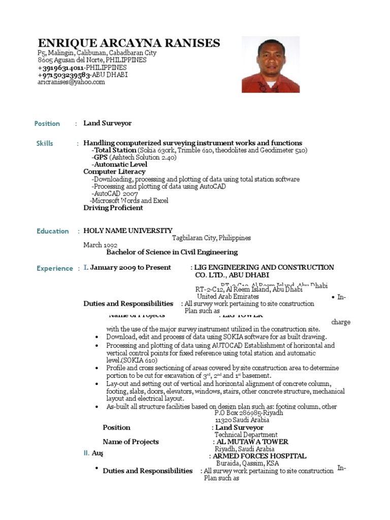 Land Surveyor Resume 2013 Legat