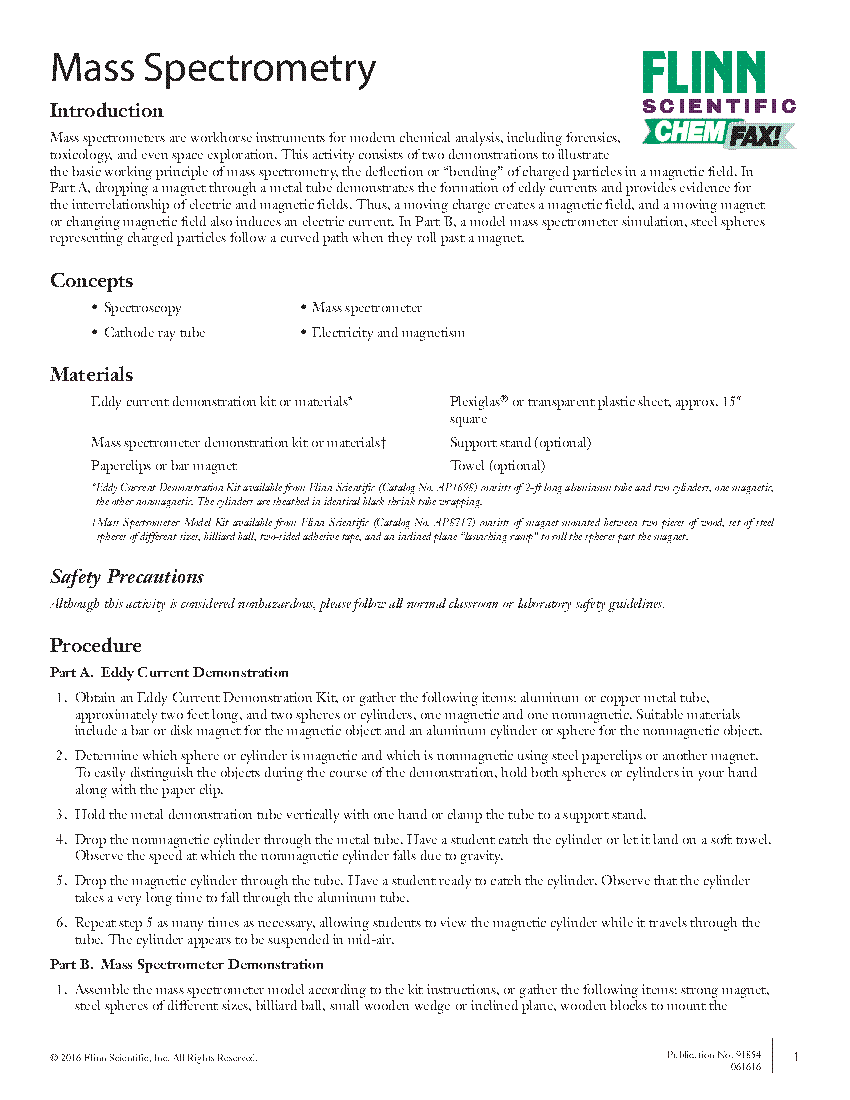 Mass Spectrograph Worksheet
