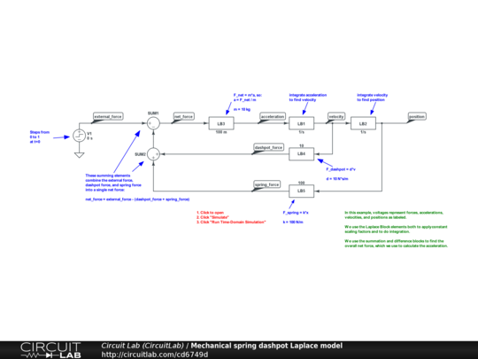 Mechanical Spring Dashpot Laplace Model Circuitlab