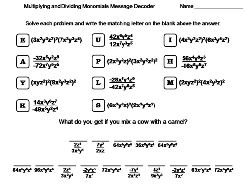 Multiplying And Dividing Monomials Worksheet Math Message Decoder