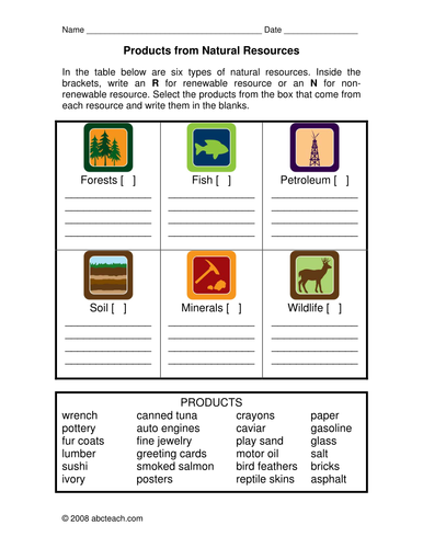 Natural Resources Sorting Worksheet Have Fun Teaching