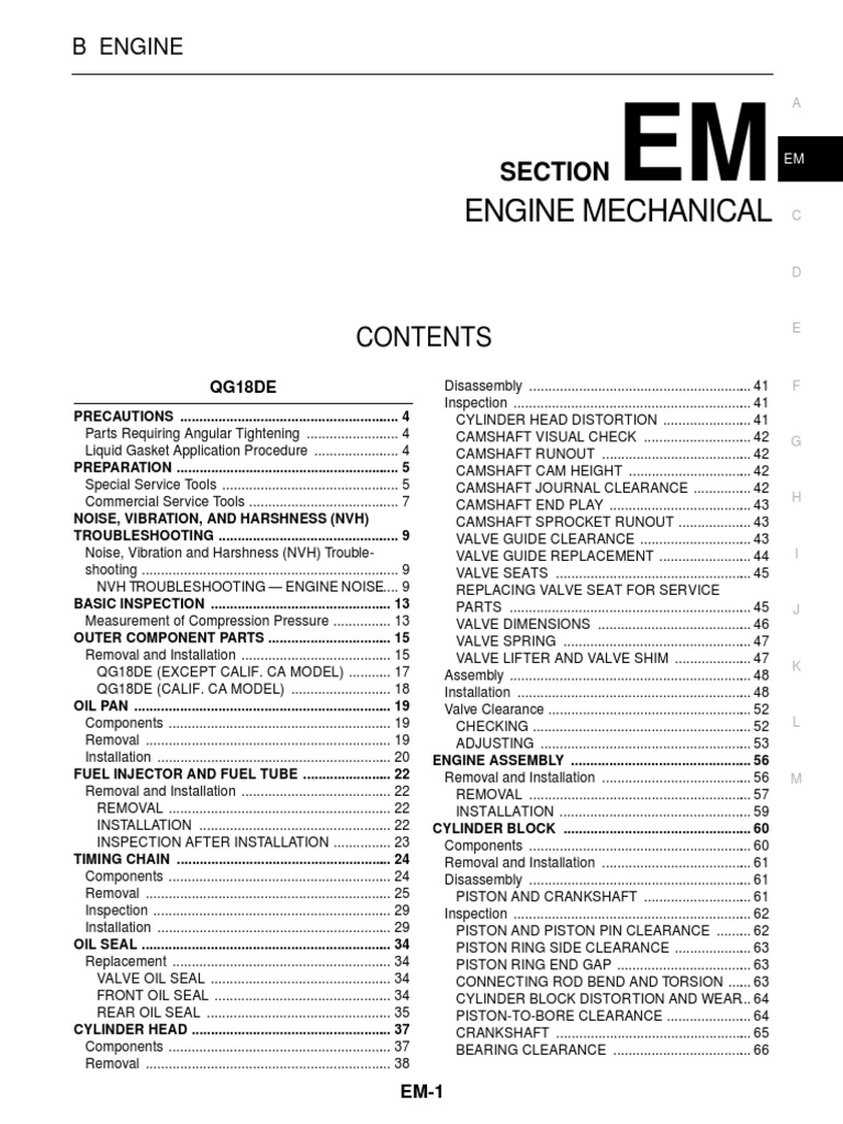 Nissan Sunny N13 B12 Petrol 1986 1990 Adjustment Data