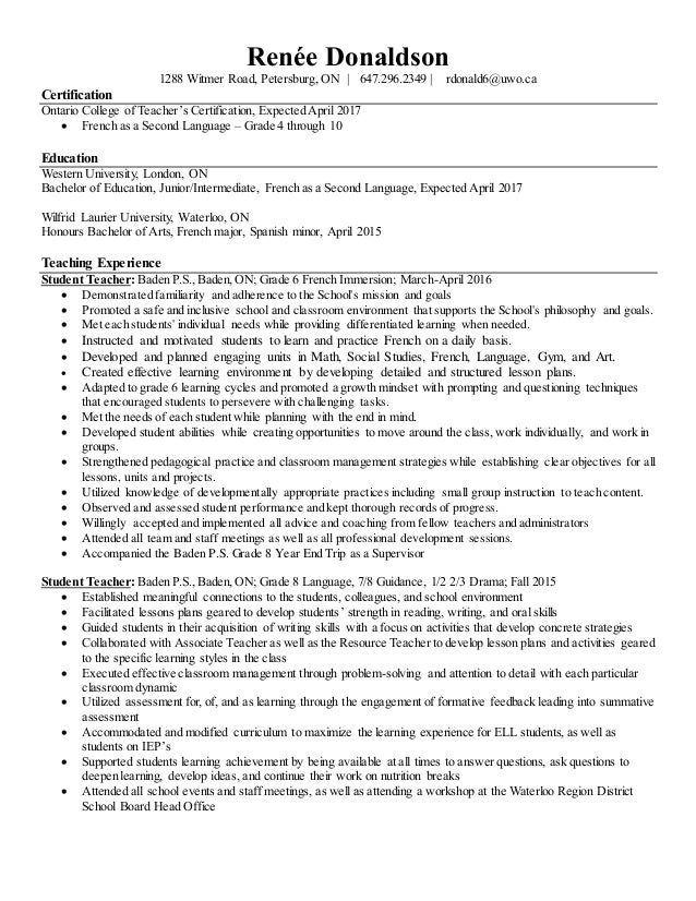 Ontario College Of Teachers Resume Application