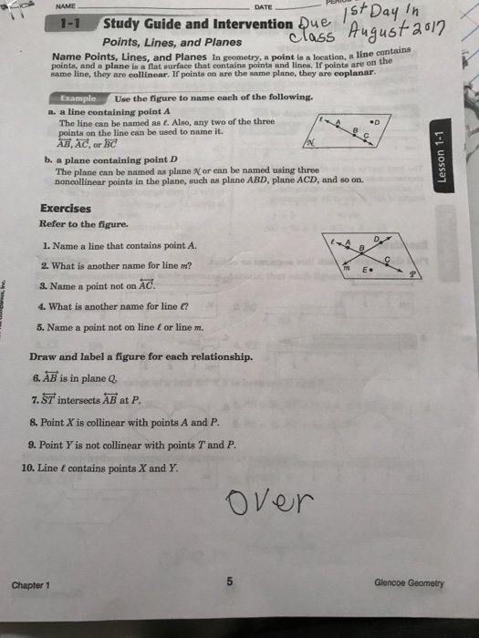 Points Lines And Planes Exercise 1 Worksheet Answer Key