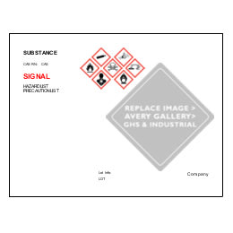 Premade and preprinted labels for common hazardous chemicals. Compatible with standard avery templates. Blank laser printable label sheets label stationery matches our ghs chemical label templates. These blank laser label sheets use a durable vinyl with a qualified drum adhesive that is superior to standard avery materials.