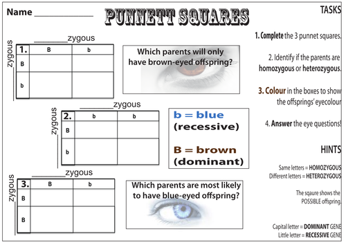 Punnett Square Worksheets Teaching Resources Tpt