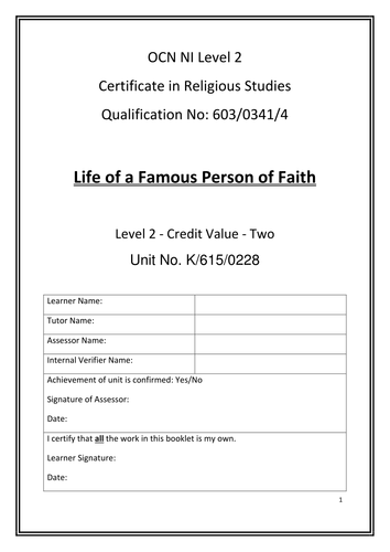 Ocn Religious Studies Certificate Life Of A Famous Person