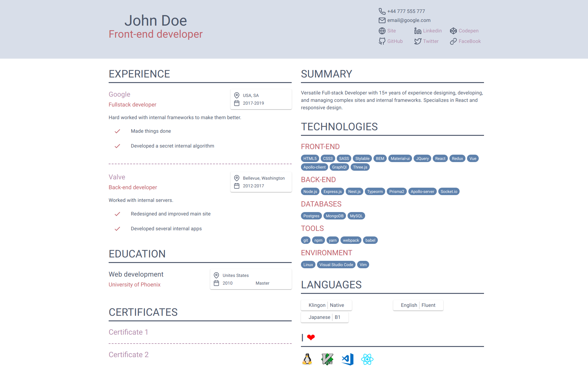 Latex Templates Deedy Resume Cv