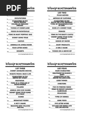 Parts of the body 4. 1 printable 16 scattergories list. Things you shout 6. In the town 5.