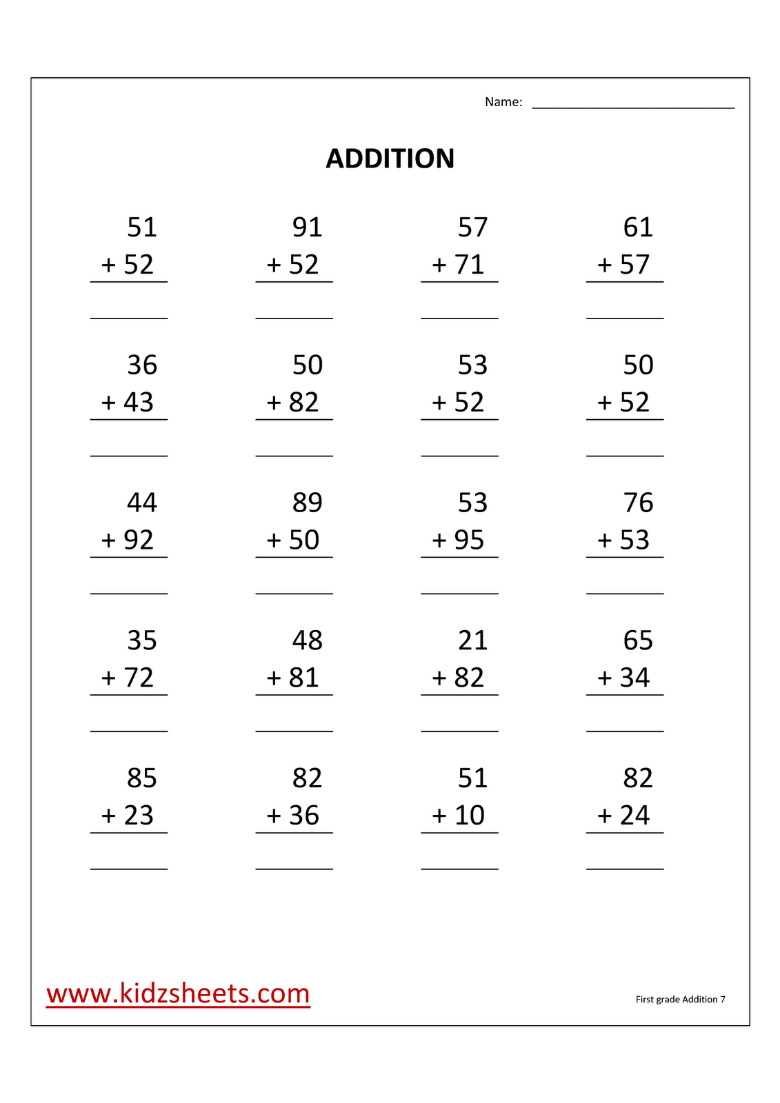 Kidz Worksheets First Grade Addition Worksheet7