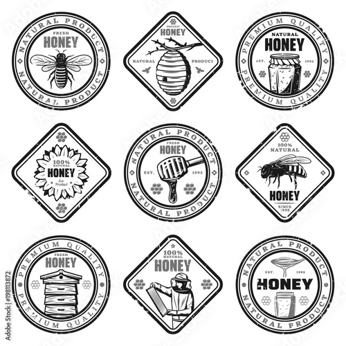 Grunge Rubber Stamp Honey Making Vintage Monochrome Vector