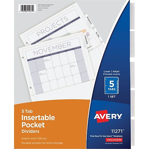 Avery Print On Printable Paper Dividers 5 Tab White 11511