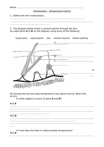Quiz Worksheet Homeostasis And Temperature Regulation In