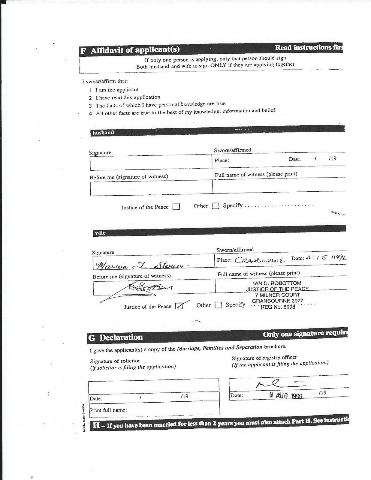 The two parties have to sign the marital separation agreement form in front of a notary public.