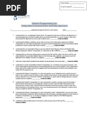 Never agree to something which you are unsure that you can fulfill your portion of the agreement. Truck driver contract agreement anytime you put out to employ a contractor or a subcontractor you will need to be certain that you have a written contract in place. Drivers daily check sheet log sheet mileage sheet. Independent contractor driver agreement pdf free download as pdf file pdf text file txt or read online for free.