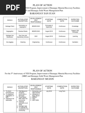 Plan Of Action Brgy Yestogreen Waste Management